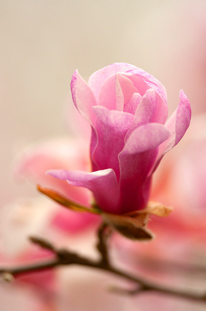So many magnolia blooms open and displayed here on the tree. This flower has tones of both white and pink. Relaxing.