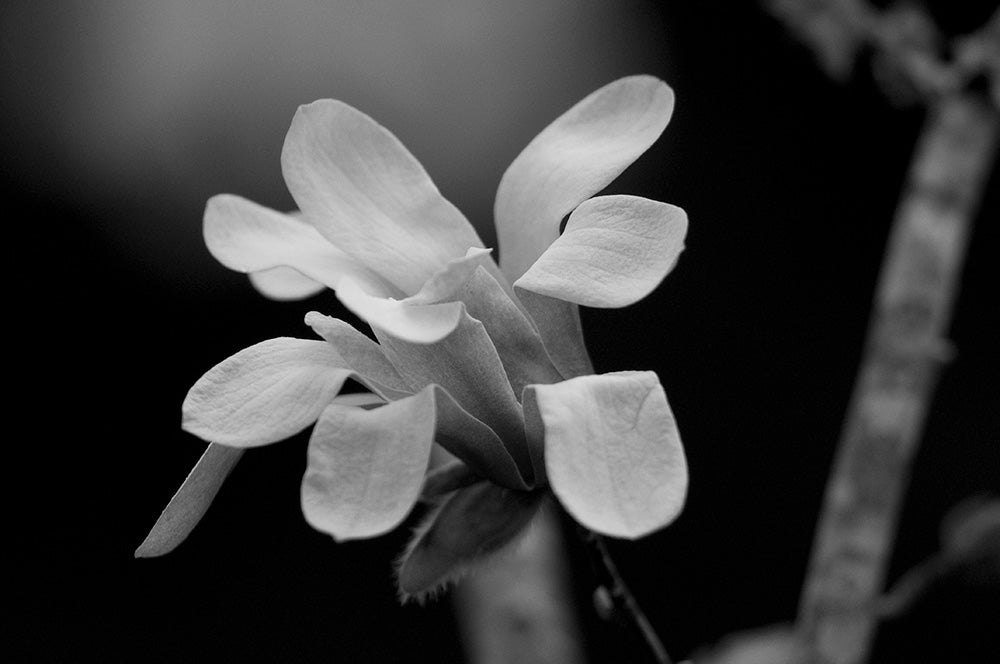 Cherry trees are one of the earliest to bloom each spring. The delicate white blossoms have just a hint of pink that echoes in the buds. This peaceful blue background enhances the scene.